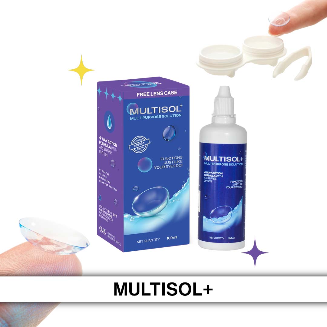 Multisol is an all-in-one solution for moisturizing and deproteinizing soft and disposable contact lenses.
